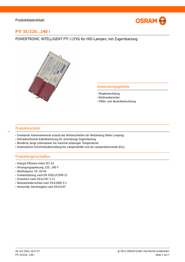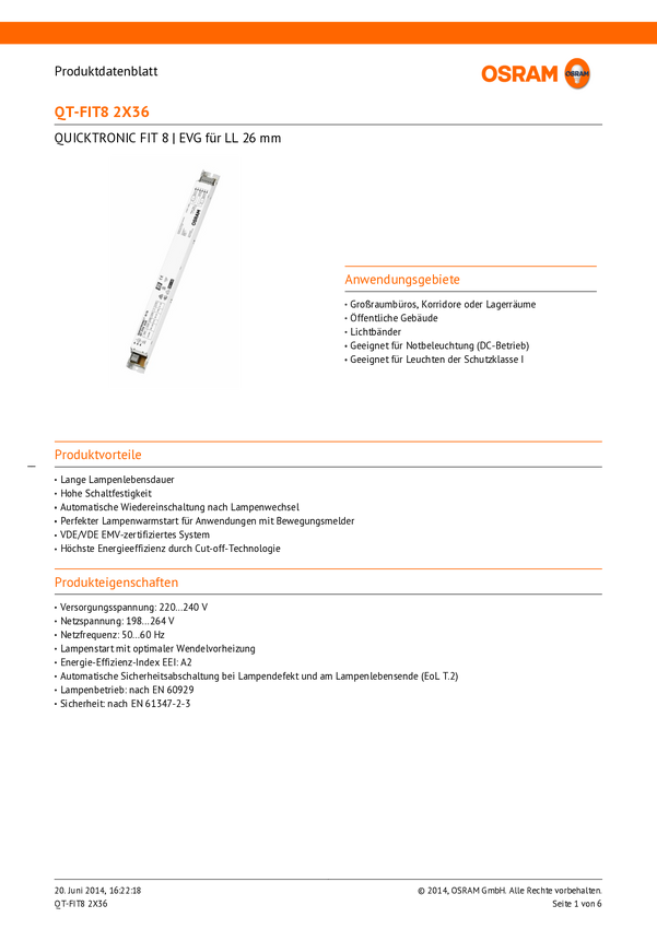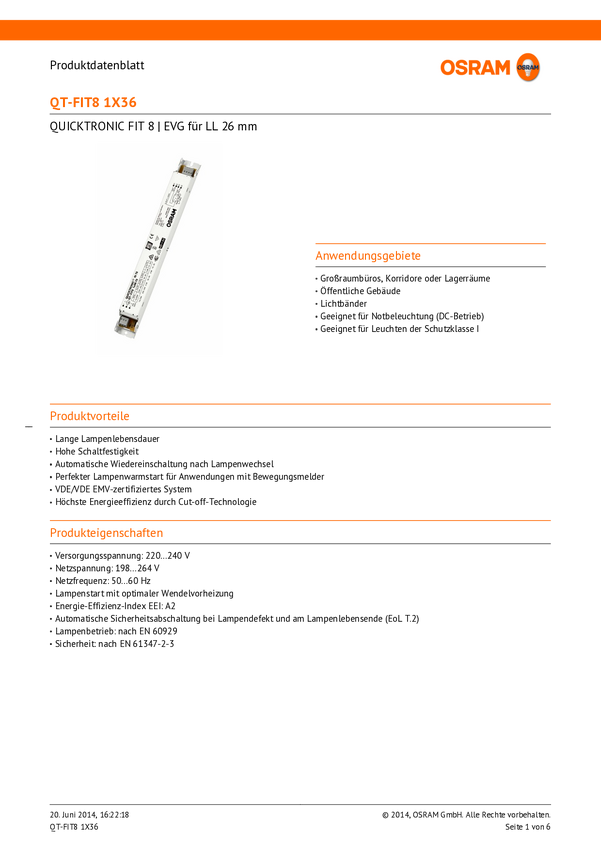 Statecznik EVG OSRAM HOMELIGHTING 4008321294203 1 szt.