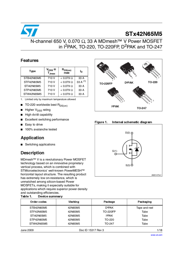 N-channel 650 V, 0.067 Ohm, 35 A, MDmesh(TM) V Power MOSFET in TO-220 package