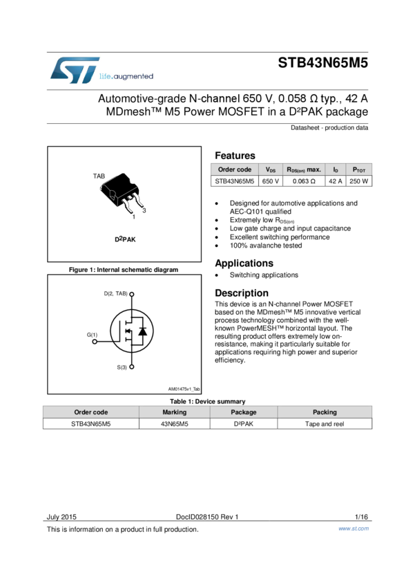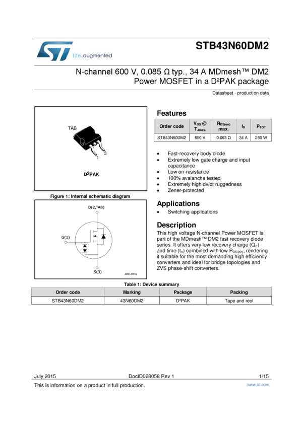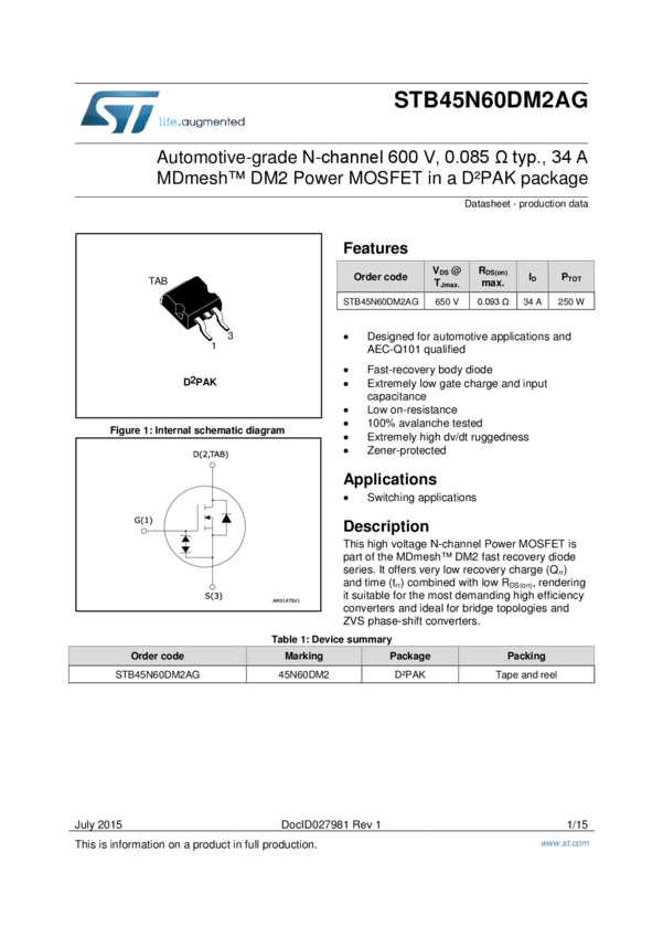 Automotive-grade N-channel 600 V, 0.085 Ohm typ., 34 A MDmesh DM2 Power MOSFET in a D2PAK package