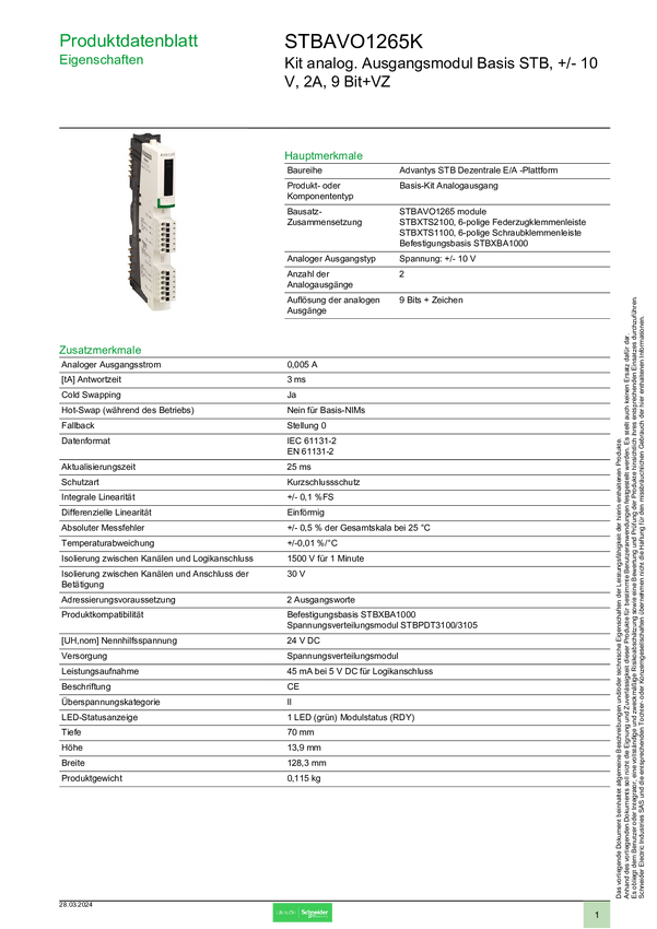 Moduł rozszerzeń Schneider Electric STBAVO1265K