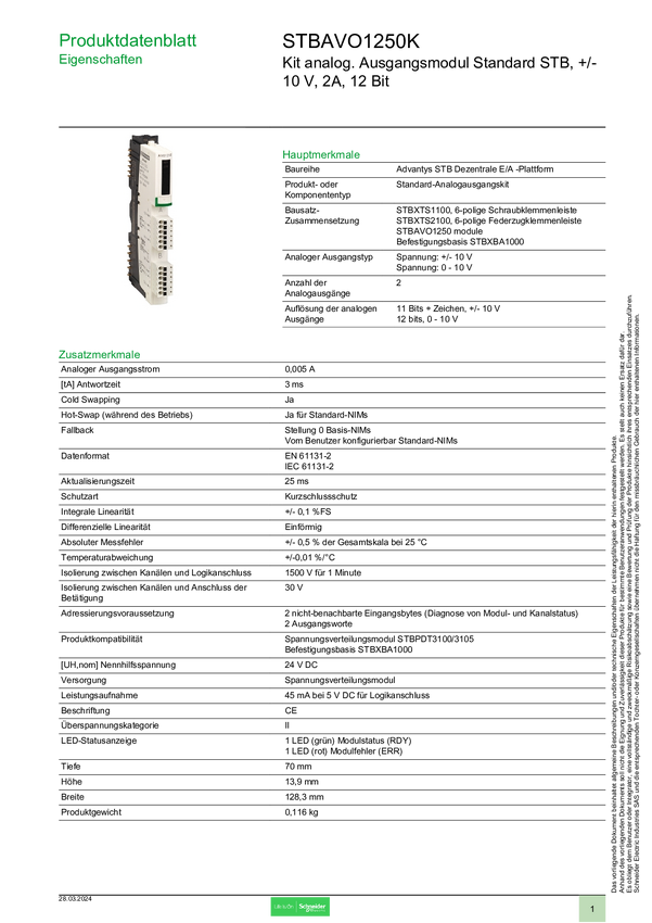 Moduł rozszerzeń Schneider Electric STBAVO1250K