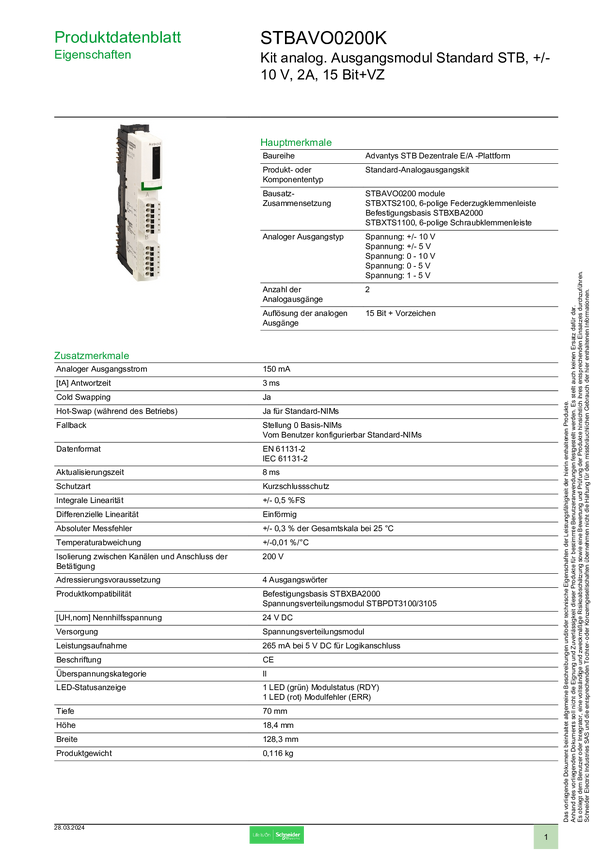 Moduł rozszerzeń Schneider Electric STBAVO0200K