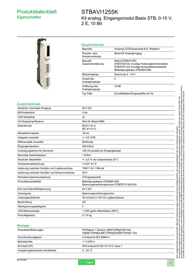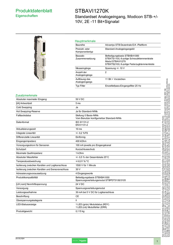 Moduł rozszerzeń Schneider Electric STBAVI1270K