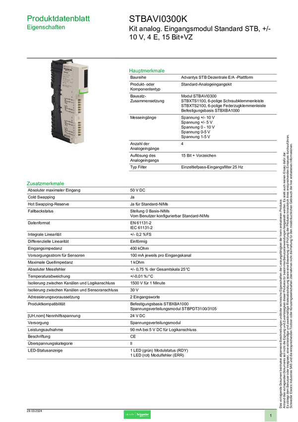 Moduł rozszerzeń Schneider Electric STBAVI0300K