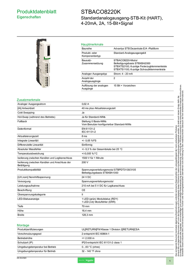 Moduł rozszerzeń Schneider Electric STBACO8220K