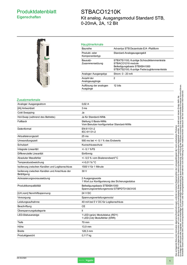 Moduł rozszerzeń Schneider Electric STBACO1225K