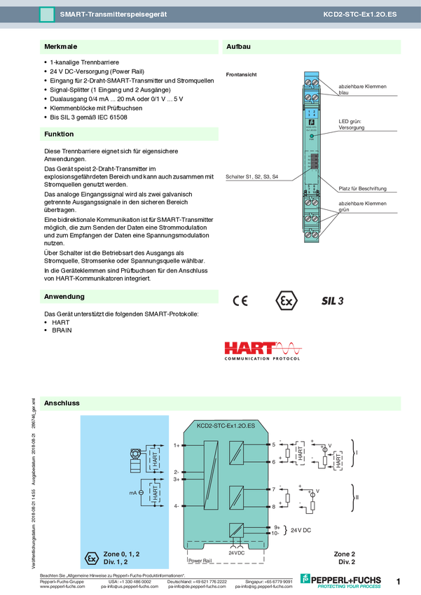 Pepperl+Fuchs KCD2-STC-Ex1.2O.ES 286746 Urządzenie zasilające nadajnika 1 szt.