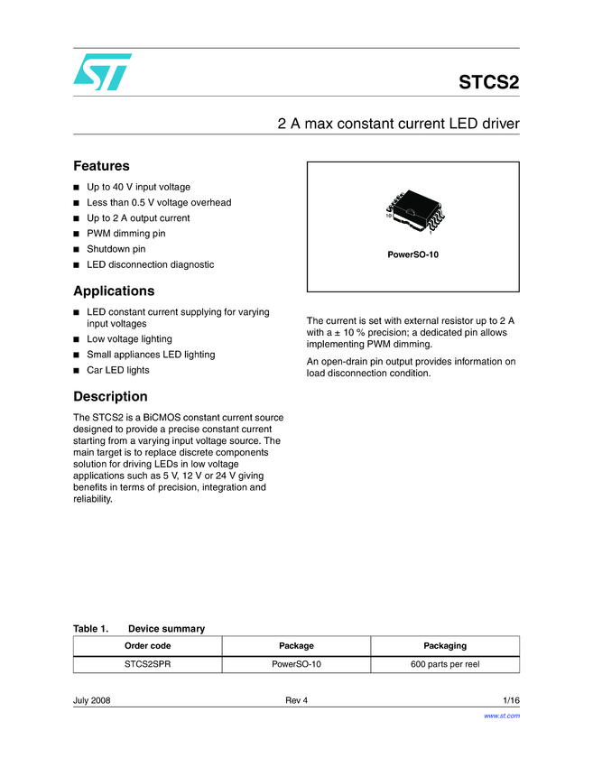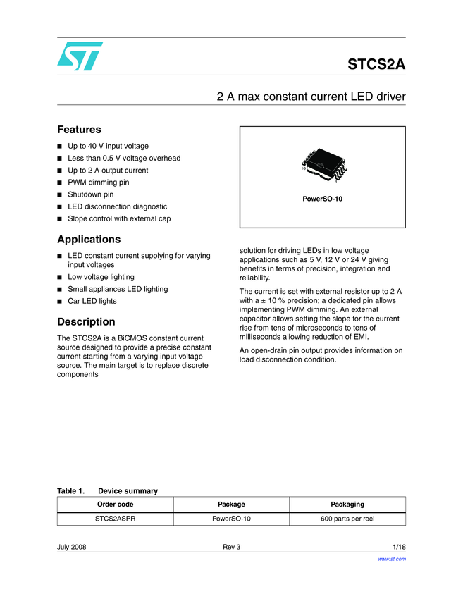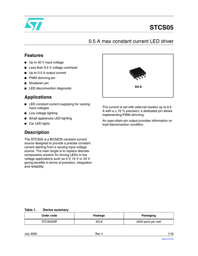 0.5A MAX CONSTANT CURRENT LED DRIVER