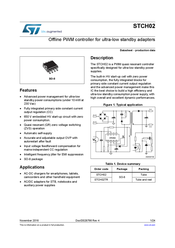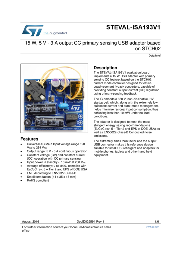 15 W, 5 V- 3 A output CC primary sensing USB adapter based on STCH02