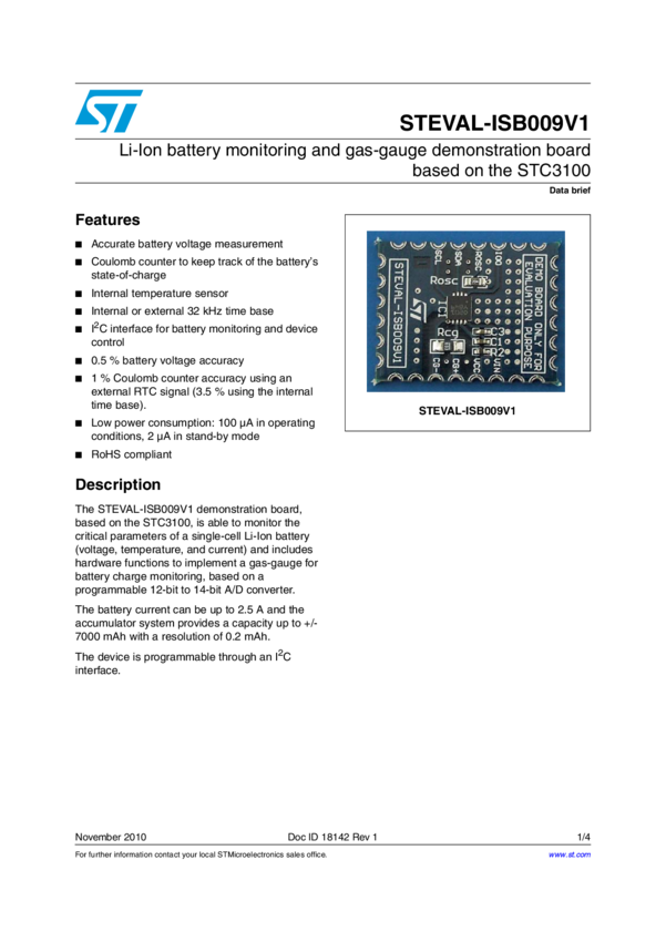 Li-Ion battery monitoring and gas gauge evaluation board based on STC3100