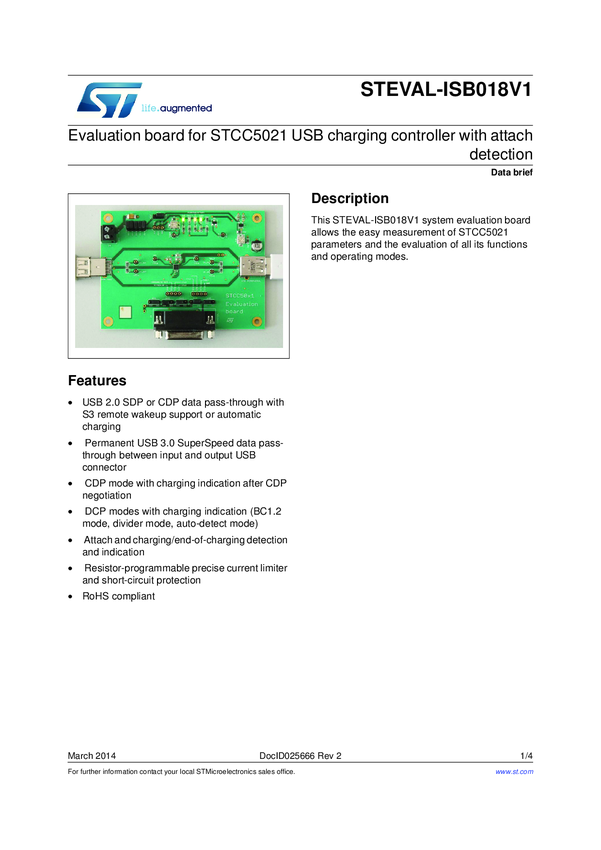 Evaluation board for STCC5021 USB charging controller with attach detection