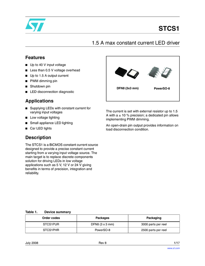 1.5A MAX CONSTANT CURRENT LED DRIVER