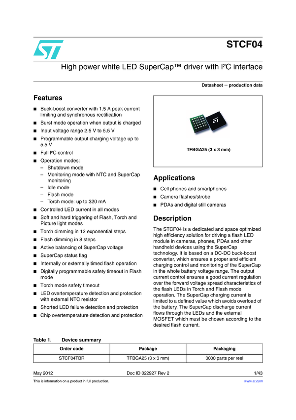 High power white LED SuperCap driver with I²C interface