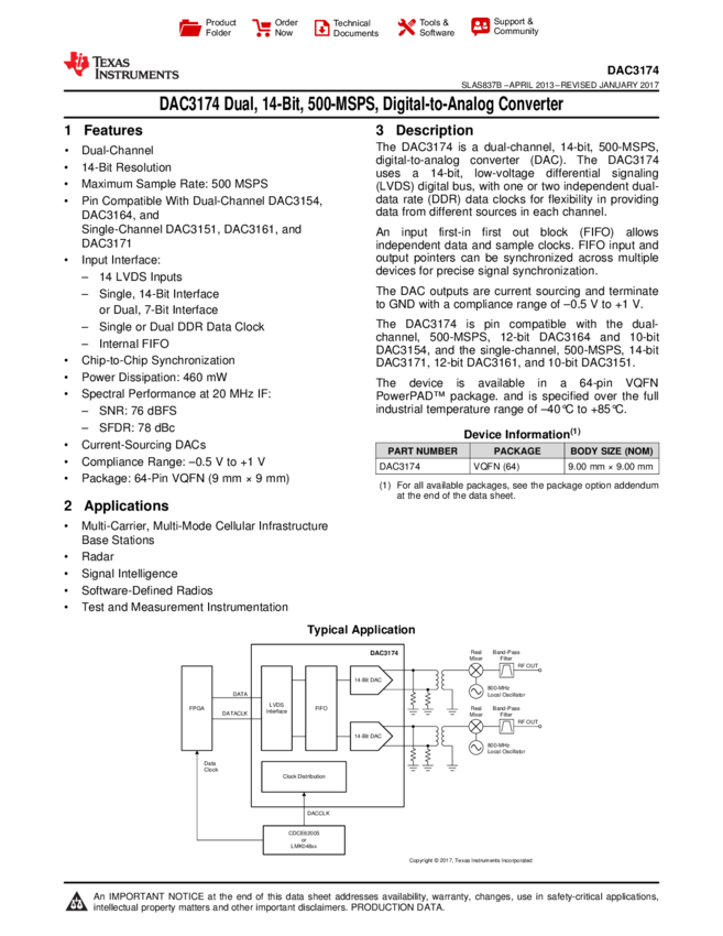 DAC 2-CH Current Steering 14-Bit 64-Pin QFN T/R