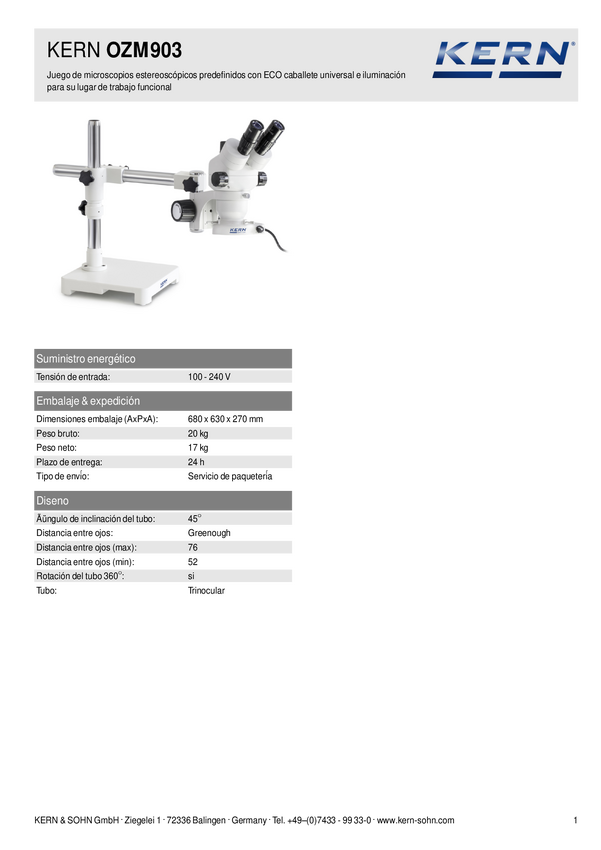 Kern OZM 902 OZM 902 Mikroskop stereoskopowy dwuokularowy 45 x światło odbite
