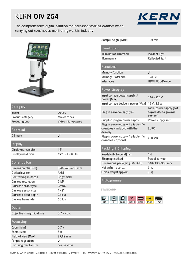 Kern OIV 254 OIV 254 Mikroskop stereoskopowy 5 x światło odbite