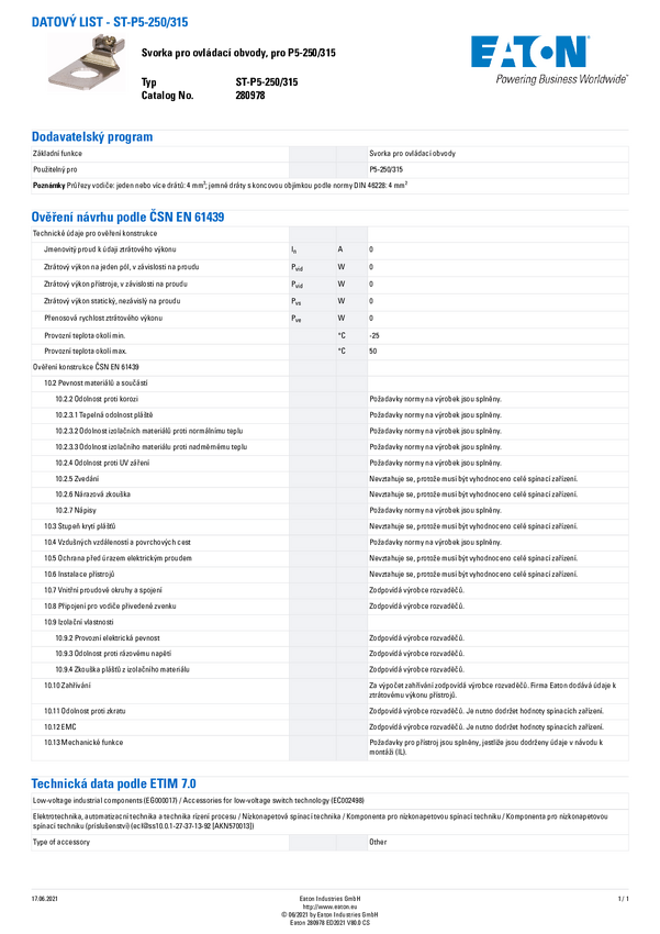 Zacisk kabla sterującego Eaton 280978 1 szt.