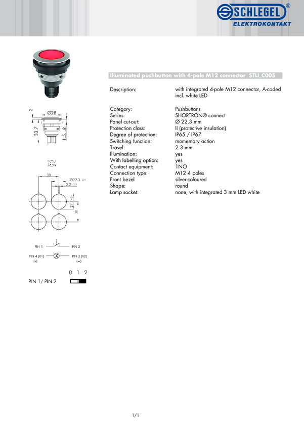 Schlegel STLI_M03 Przycisk chwilowy IP65, IP67 1 szt.