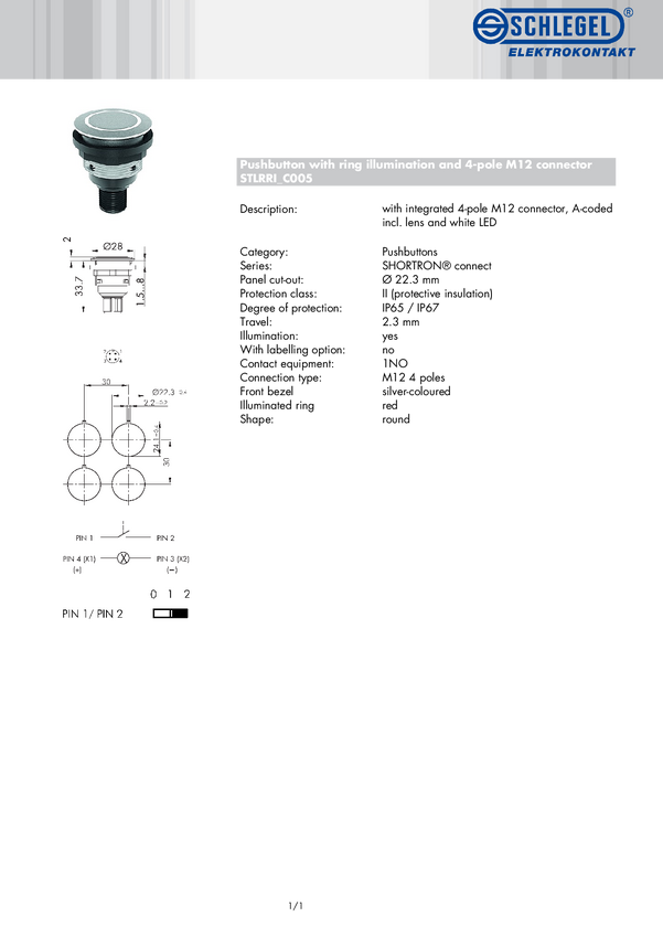 Schlegel STLRRI0042C005 STLRRI0042C005 Przycisk manualne, 1 przycisk 1 szt.