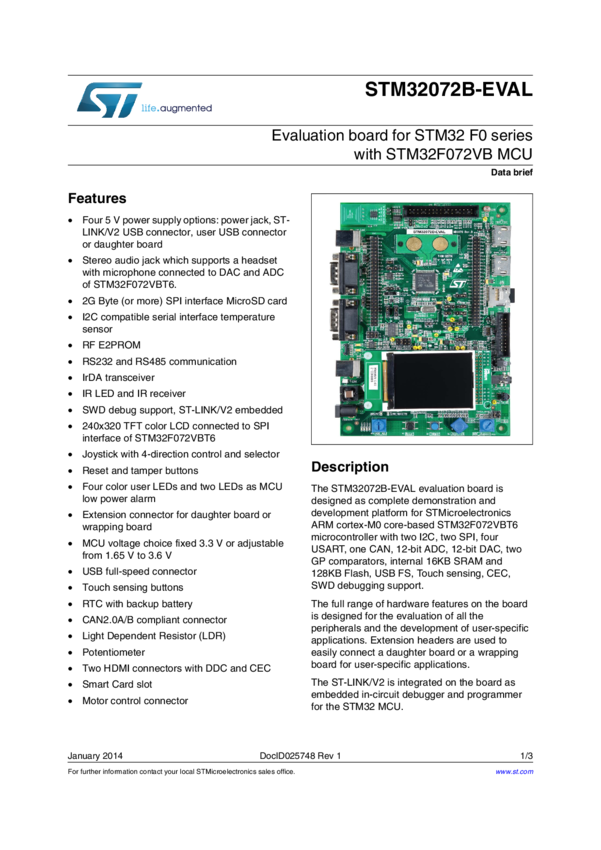 STM32 Nucleo-64 development board with STM32F072RB MCU, supports Arduino and ST morpho connectivity