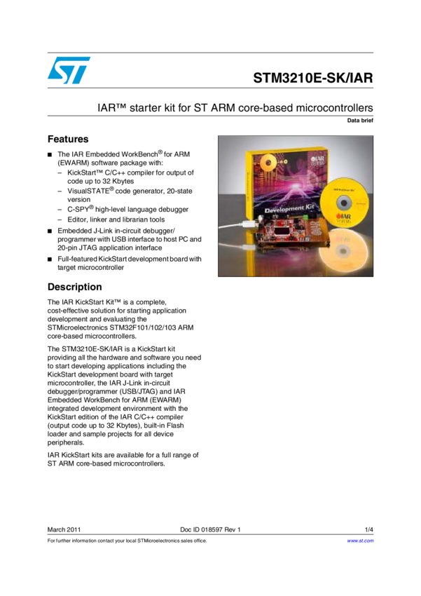 IAR starter kit for STM32 F1 series Performance and Access Line microcontrollers (STM32F103ZE MCU)