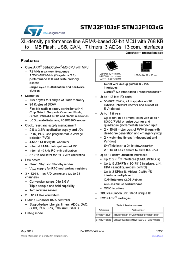 Mainstream Performance line, ARM Cortex-M3 MCU with 512 Kbytes Flash, 72 MHz CPU, motor control, USB and CAN