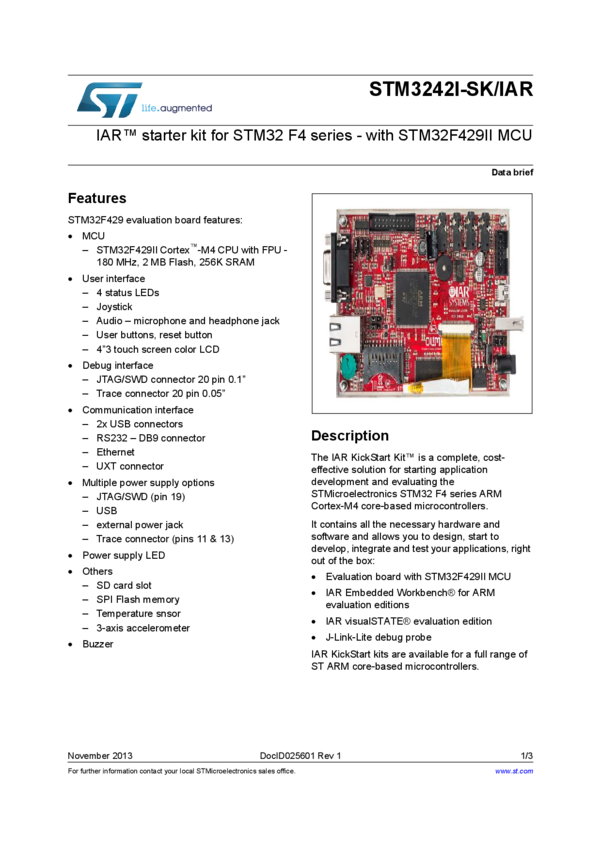 IAR starter kit for STM32F429/439 lines - with STM32F429II MCU
