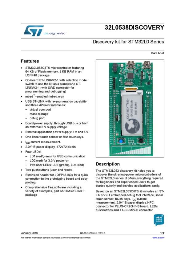 STM32 Nucleo-64 development board with STM32L053R8 MCU, supports Arduino and ST morpho connectivity