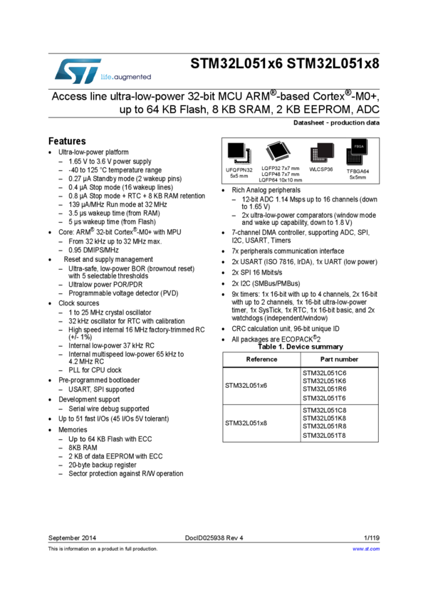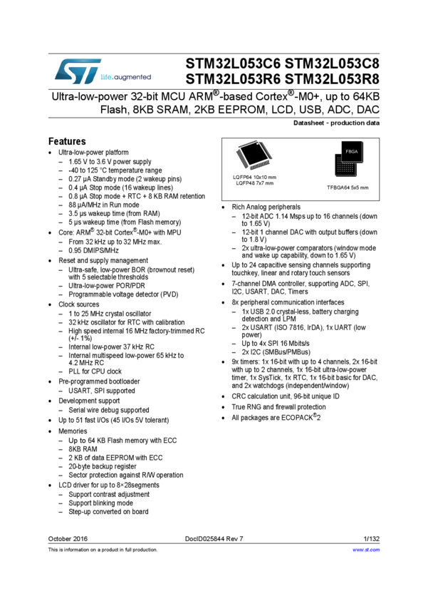 Ultra-low-power ARM Cortex-M0+ MCU with 64 Kbytes Flash, 32 MHz