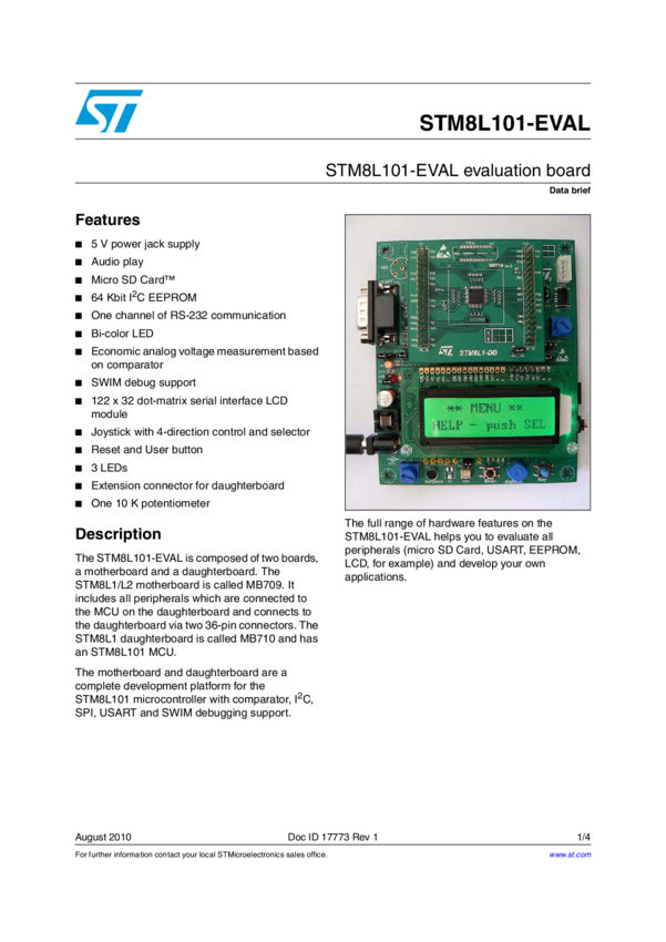 MCU 8-bit STM8L STM8 CISC 8KB ROM 1.8V/2.5V 20-Pin UFQFPN T/R