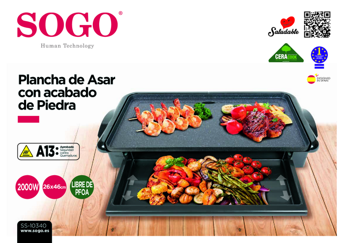 Grill stołowy SOGO Human Technology, 2000 W, czarny, stone finish