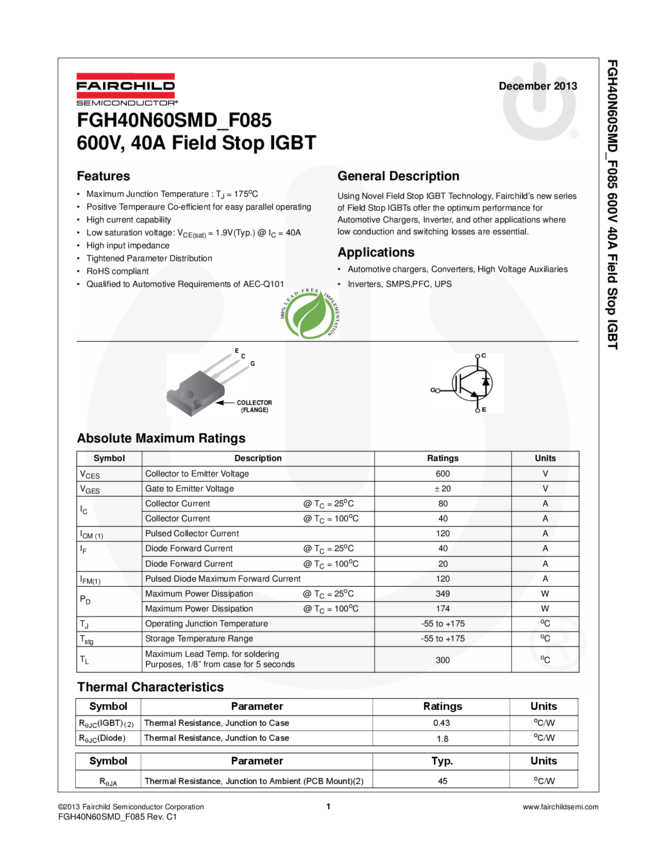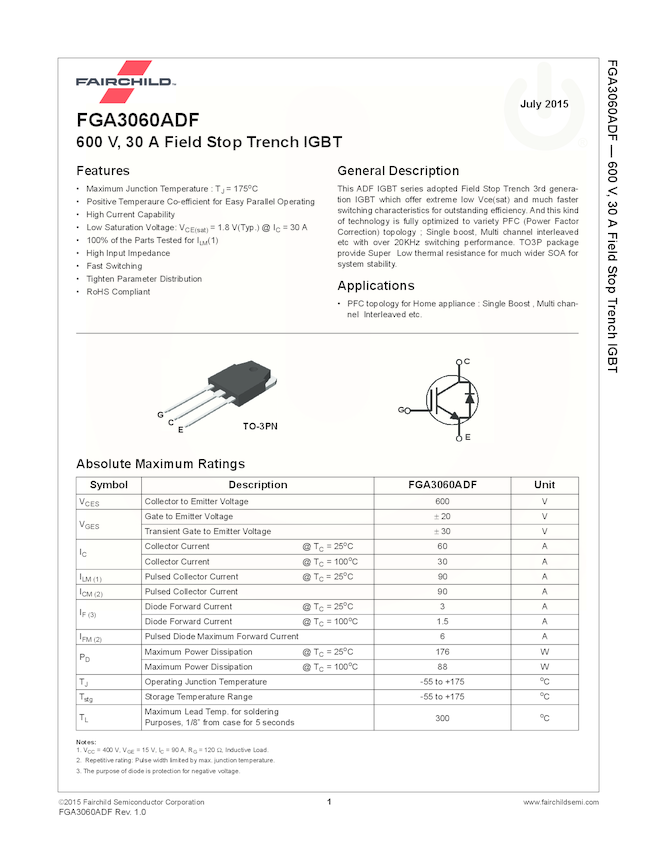 Trench gate field-stop IGBT, V series 600 V, 80 A very high speed
