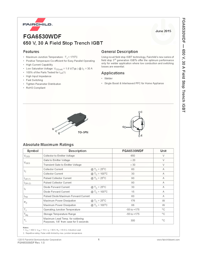 Trench gate field-stop IGBT, HB series 650 V, 40 A high speed