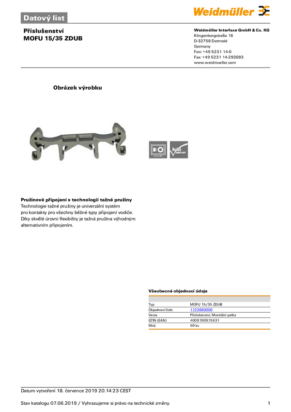 Weidmüller 1723660000 Stopka montażowa 50 szt.