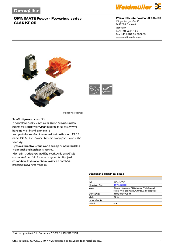 Stopka zatrzaskowa SLAS KF OR 1576460000 Weidmüller Zawartość: 20 szt.