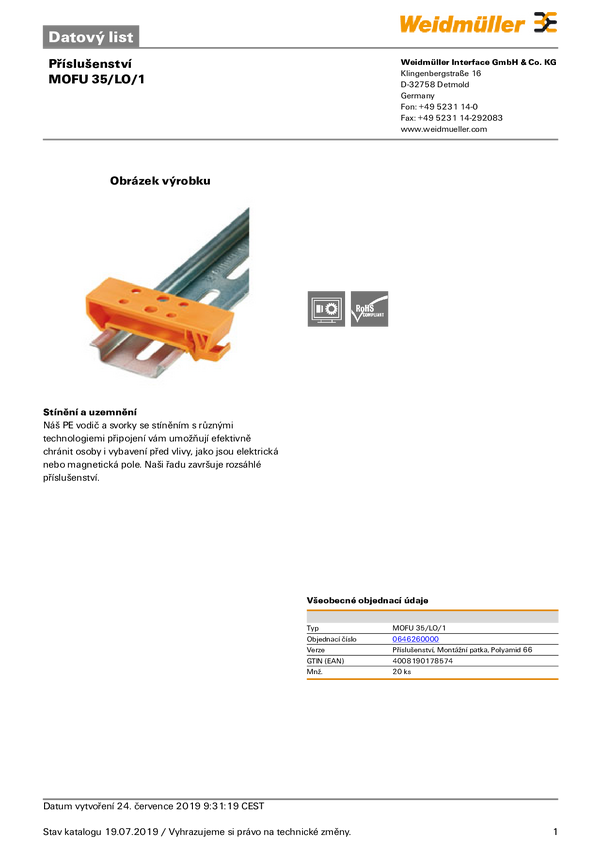 Stopka montażowa Weidmüller MOFU 35/LO/1 SW 0646210000, 20 szt.