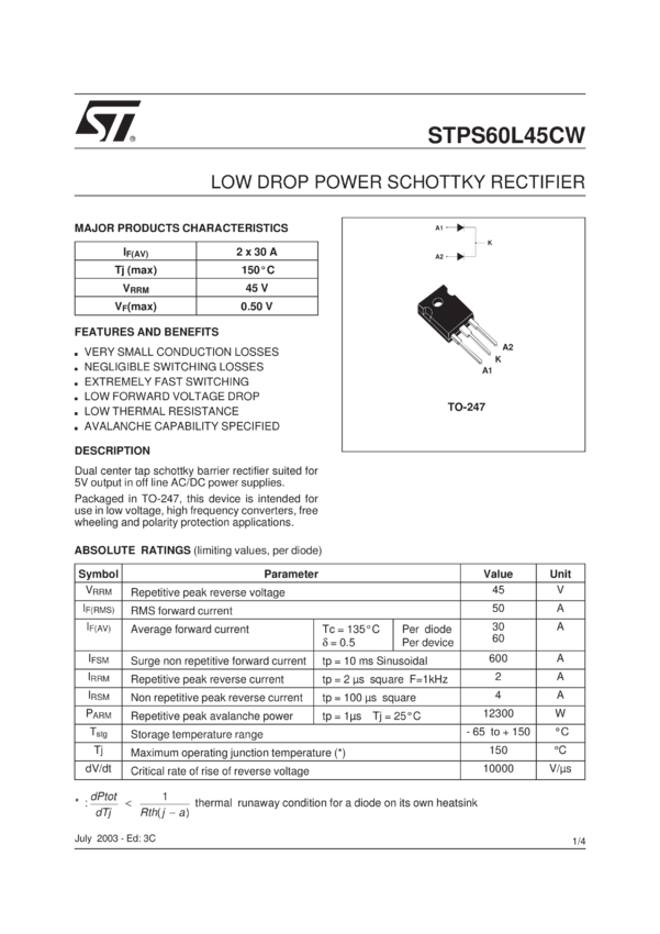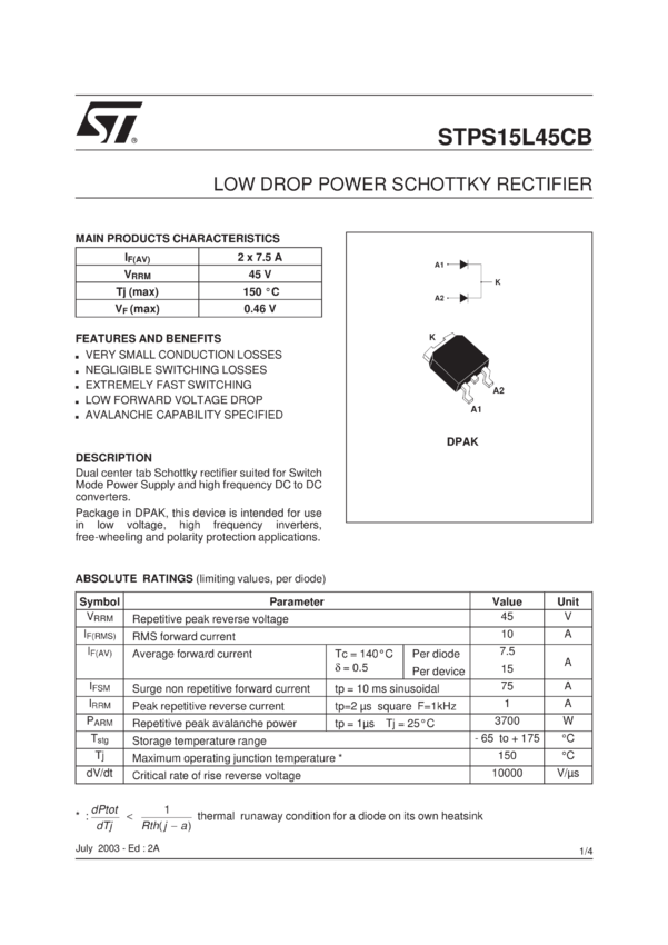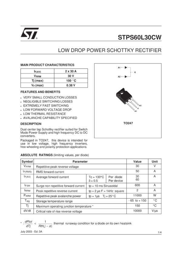 Low Drop Power Schottky Rectifier
