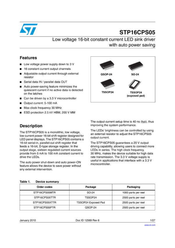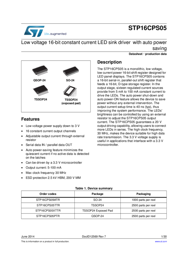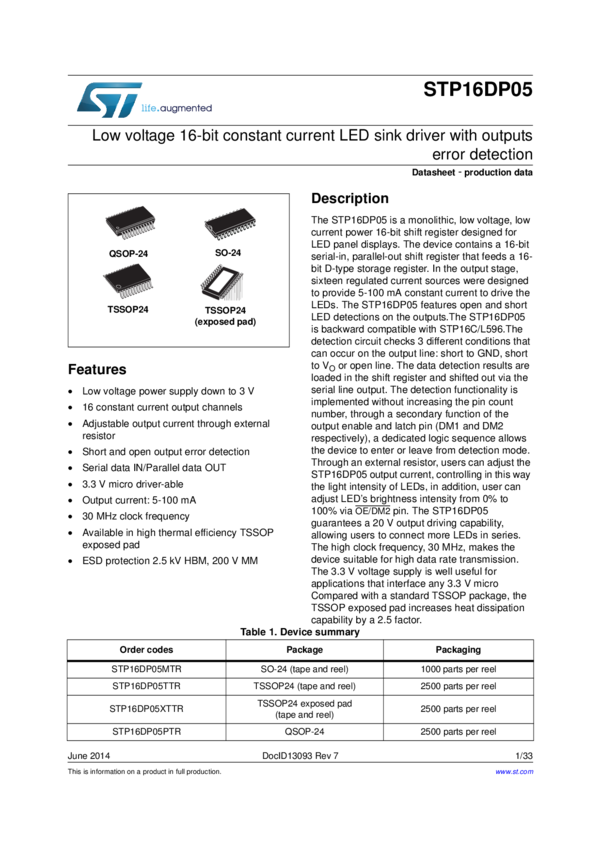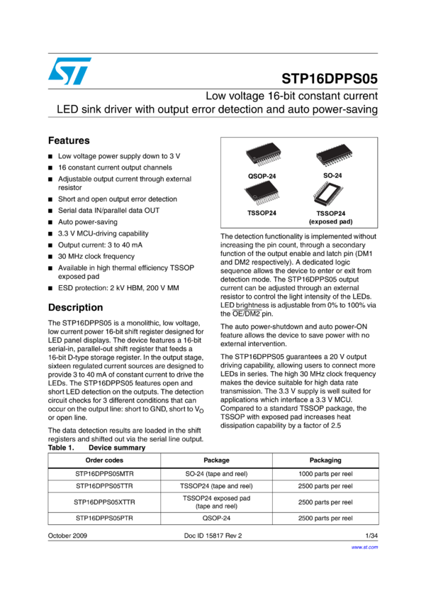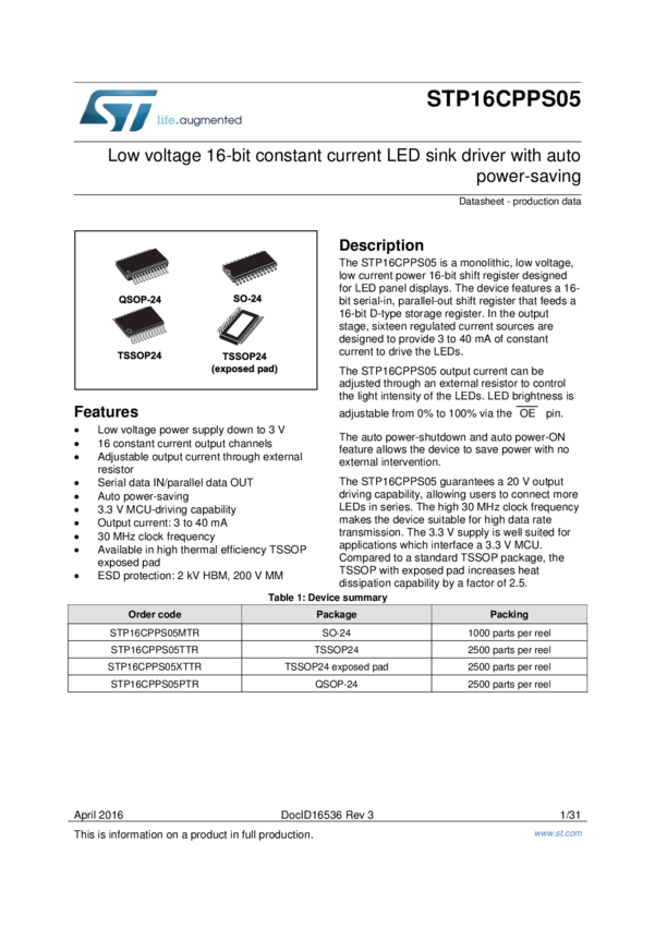 Low-voltage 16-bit constant current LED sink driver with outputs error detection and auto-power saving