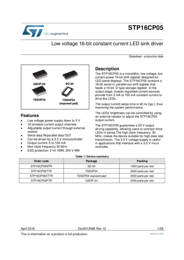 LED DRVR 16Segment 3.3V/5V 24-Pin QSOP T/R