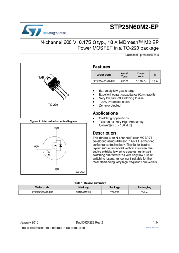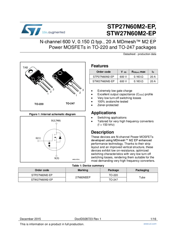 MOSFET STMicroelectronics STP24N60DM2 N/A N/A