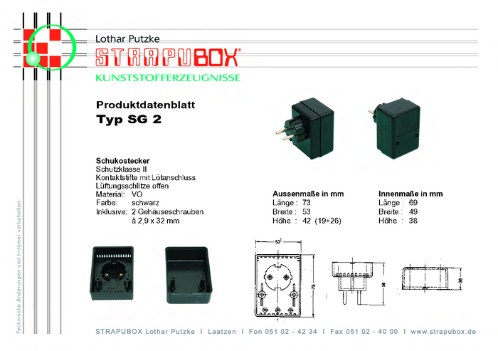 Obudowa wtyczki, Strapubox SG 2, ABS antystatyczny, 54 x 74 x 43 mm, czarna