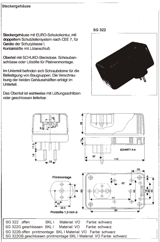 Obudowa ładowarki wtyczkowej Strapubox , SG 1022, czarna