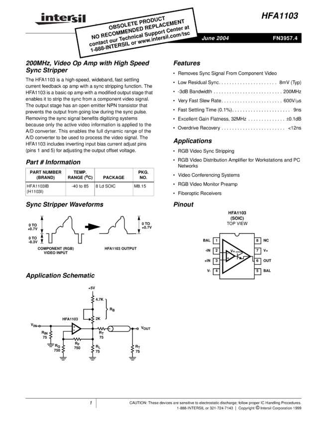 200MHz, Video Op Amp with High Speed Sync Stripper