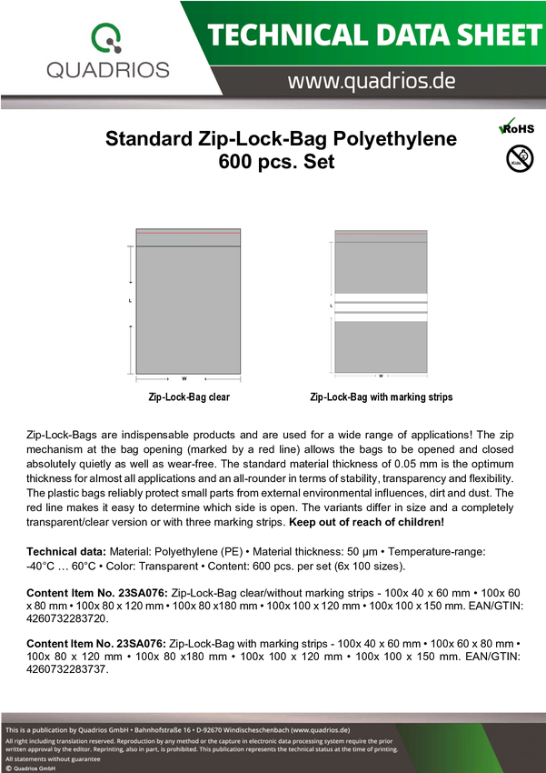 Woreczek strunowy z paskiem opisowym Quadrios 23SA067 (S x W) 80 mm x 120 mm przeźroczysty polietylen