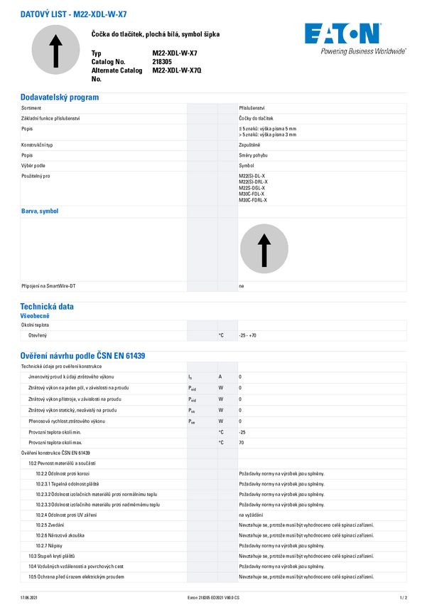 Nakładka na przycisk Eaton M22-XDL-W-X7 symbol strzałki 1 szt.