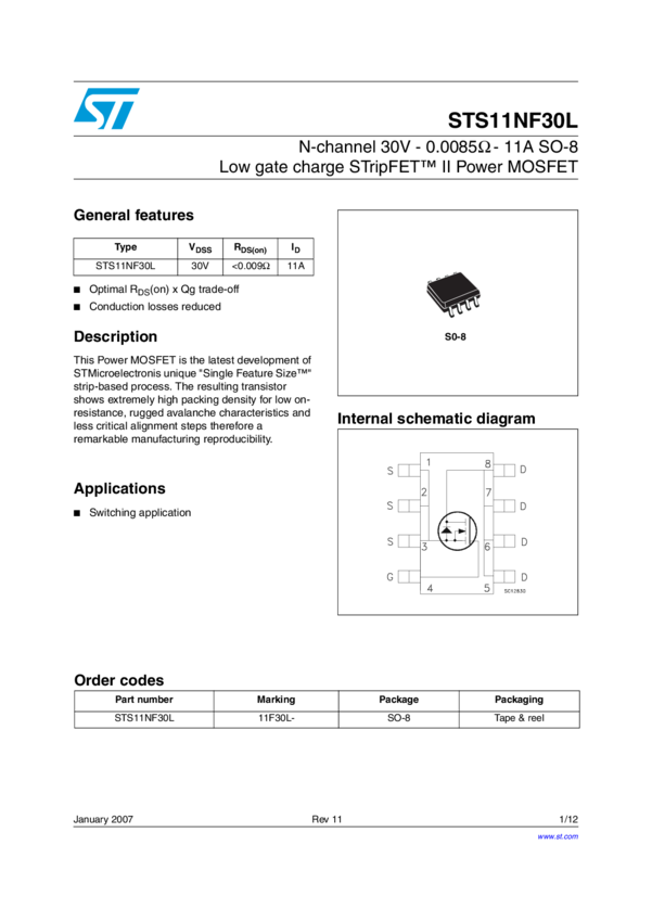 Trans MOSFET N-CH 30V 11A 8-Pin SO N T/R