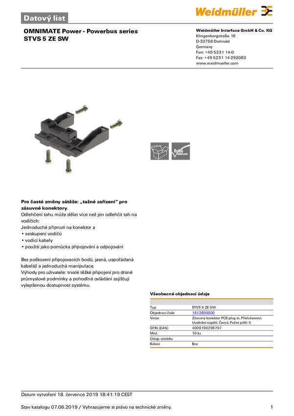 Element kodujący STV S KO 1613800000 Weidmüller Zawartość: 50 szt.