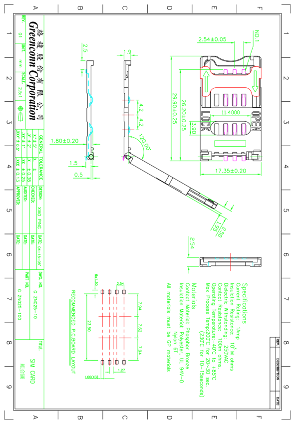 Podstawka SIM, 6-stykowa, , GREENCONN