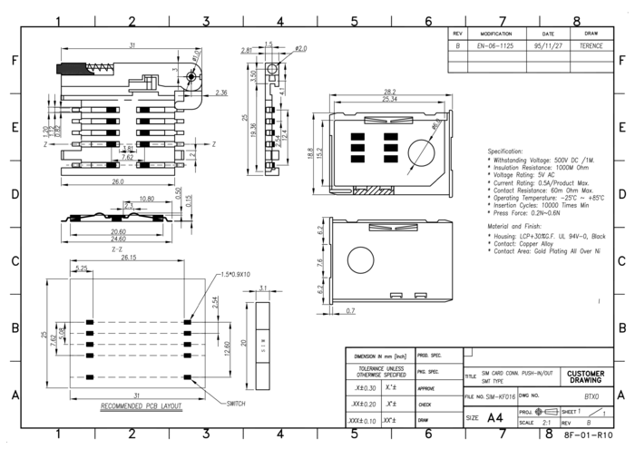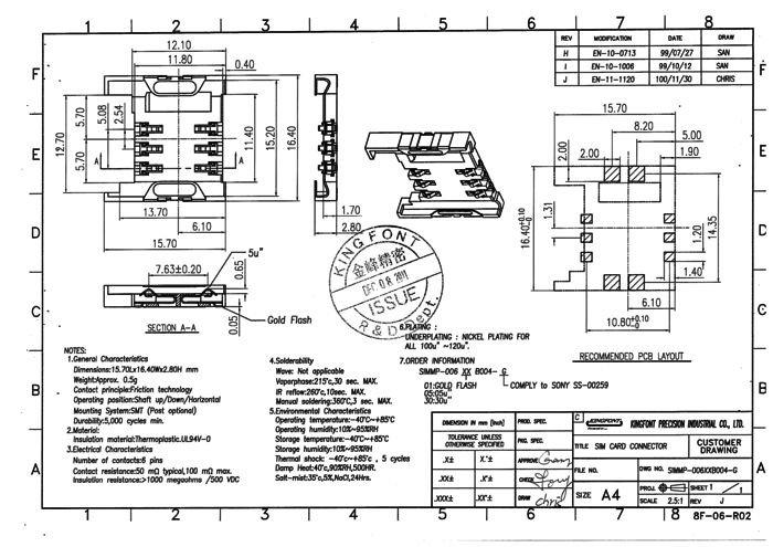 Podstawka SIM, 6-stykowa, , taśmowane 500szt/rolka, KINGFONT