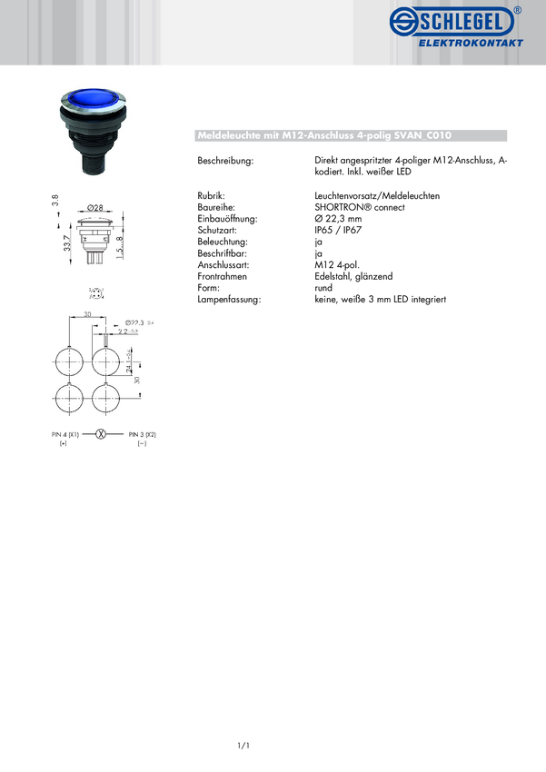 Schlegel SVAN_C010 Podświetlenie wskaźnika 30 V DC/AC 1 szt.